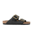 The legendary Arizona is for many, the epitome of the Birkenstock sandal and has been one of the most popular models, delighting wearers worldwide for decades. The iconic design is simple, a two-strap upper that can be individually adjusted to the wearer’s feet using two sturdy buckles complemented with the signature comfort of the Birkenstock footbed – guaranteeing a good fit and firm support. The variety of available materials and colours make the model a sandal for all walks of life.