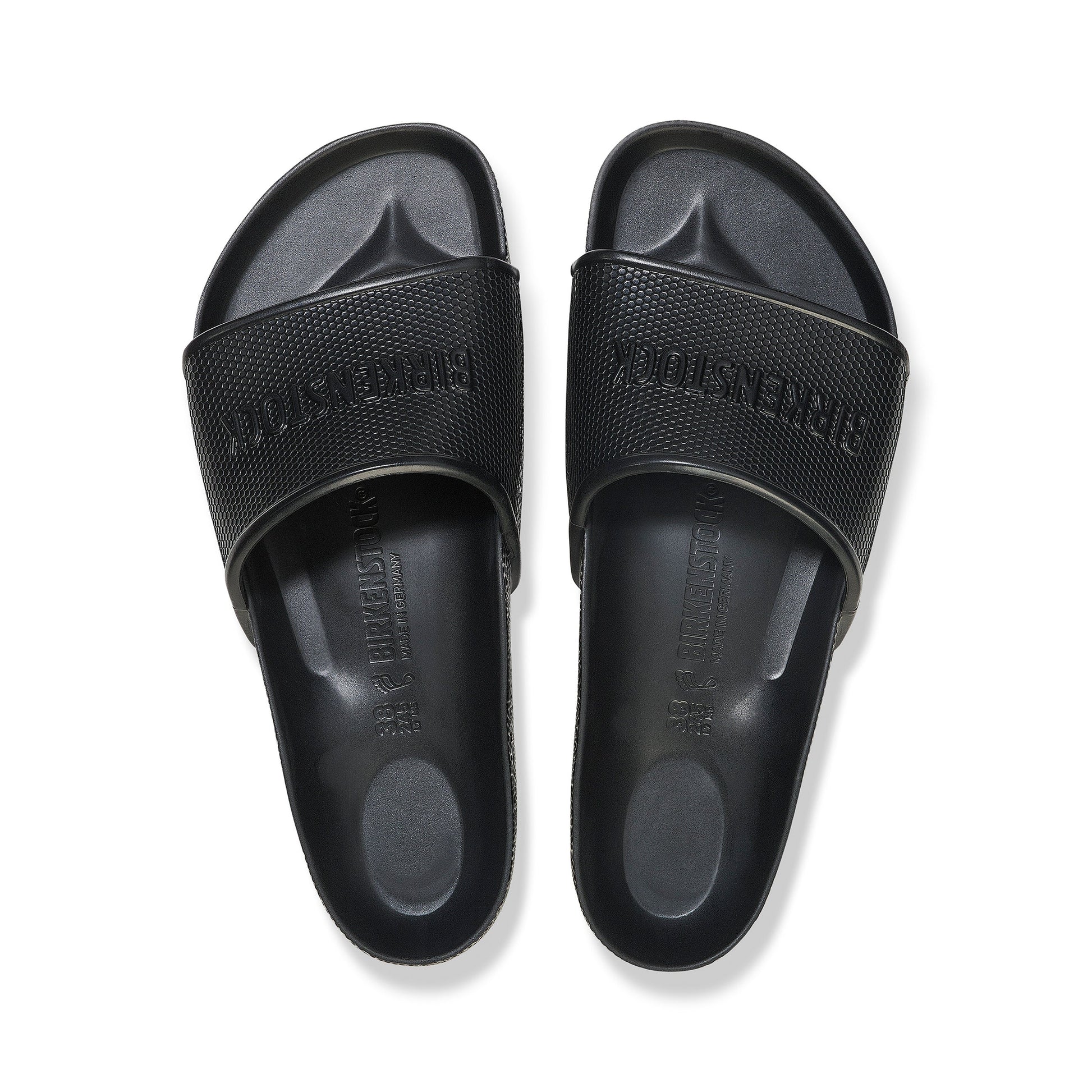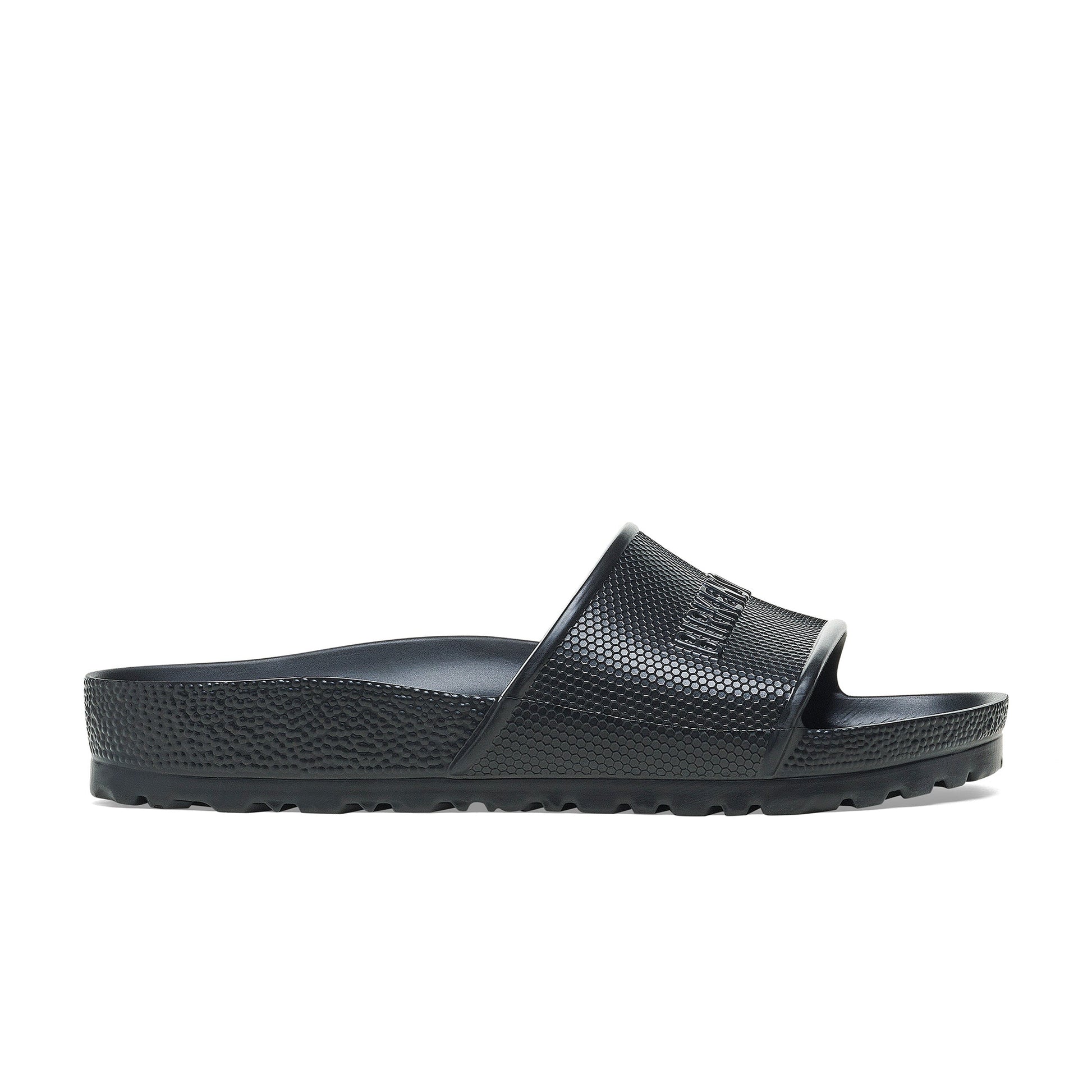 The Birkenstock Barbados is a waterproof lightweight, sporty slide design with a hexagon pattern and logo lettering. Modelled on the cork sandal, this sandal is made from one piece of light, flexible and waterproof moulded EVA.