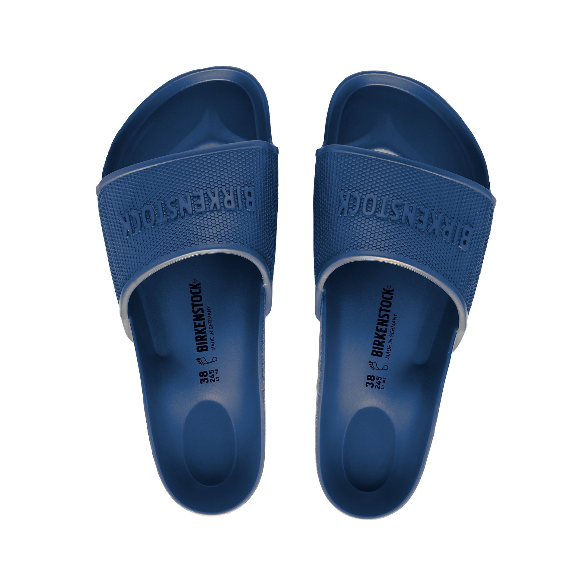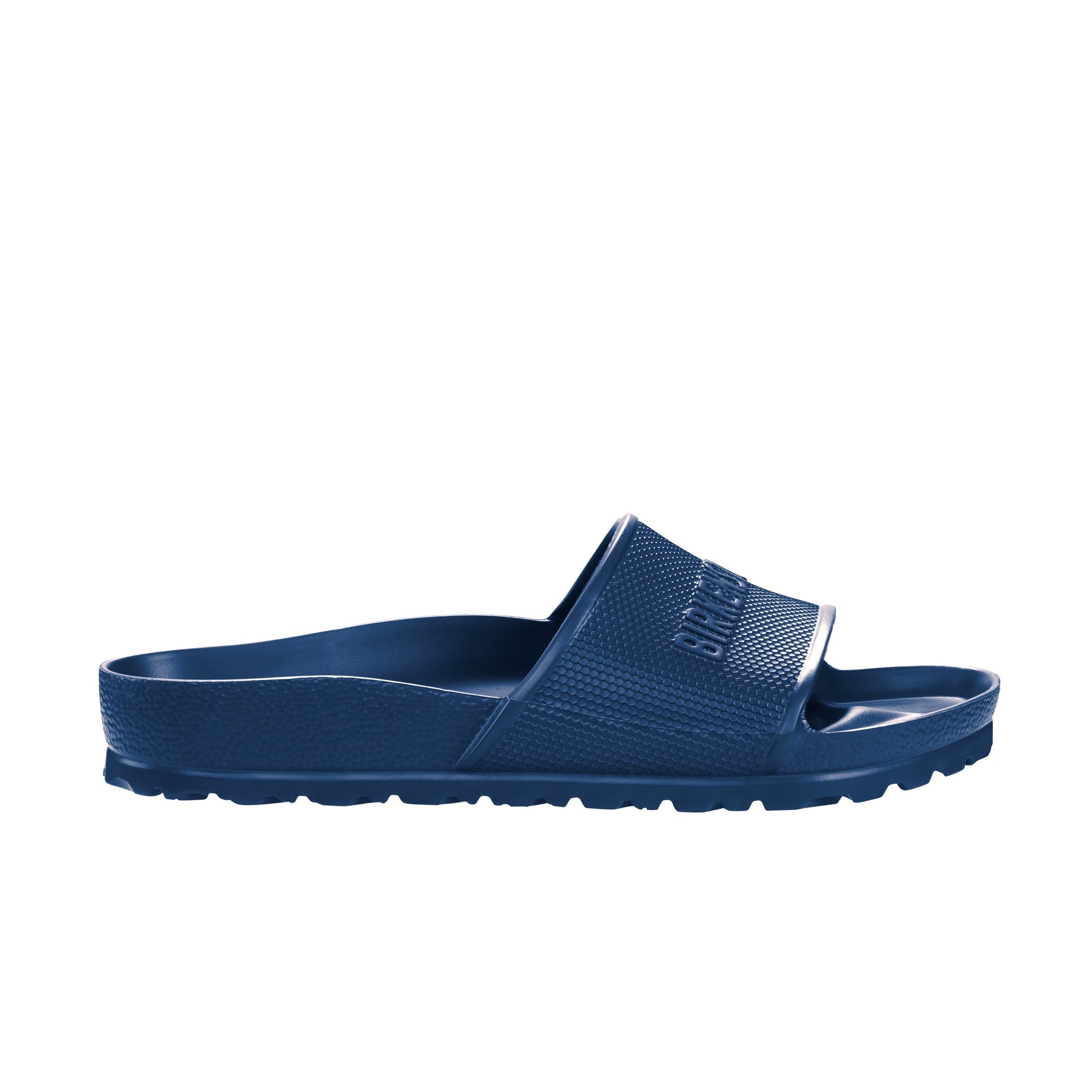 The Birkenstock Barbados is a waterproof lightweight, sporty slide design with a hexagon pattern and logo lettering. Modelled on the cork sandal, this sandal is made from one piece of light, flexible and waterproof moulded EVA.