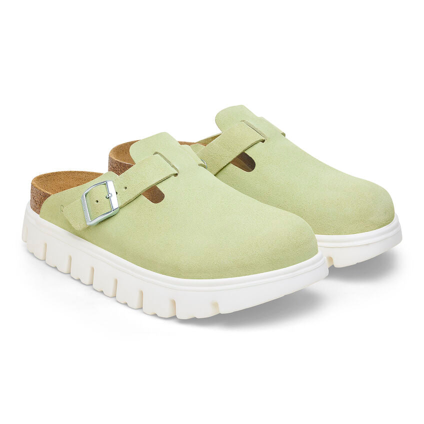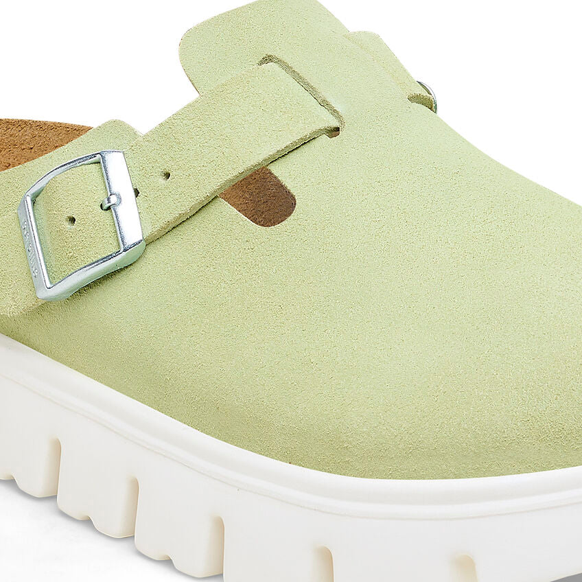 Notre sabot le plus recherché, le Boston. Cette version est dotée d'un daim velouté qui donne un look classique décontracté et de grosses semelles plateforme qui ajoutent une touche amusante unique. Légèrement plus rigide qu'un sabot Boston traditionnel.