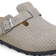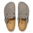 Depuis son introduction en 1977, le sabot Boston continue d'être un favori parmi les fans de Birkenstock année après année. Toujours fabriqué avec la semelle intérieure profilée originale en liège Birkenstock, ce style facile à enfiler offre un excellent soutien de la voûte plantaire et le confort légendaire pour lequel la marque Birkenstock est devenue célèbre. Ce style présente un motif à micro-points moderne obtenu en perforant la couche supérieure de la tige en daim.