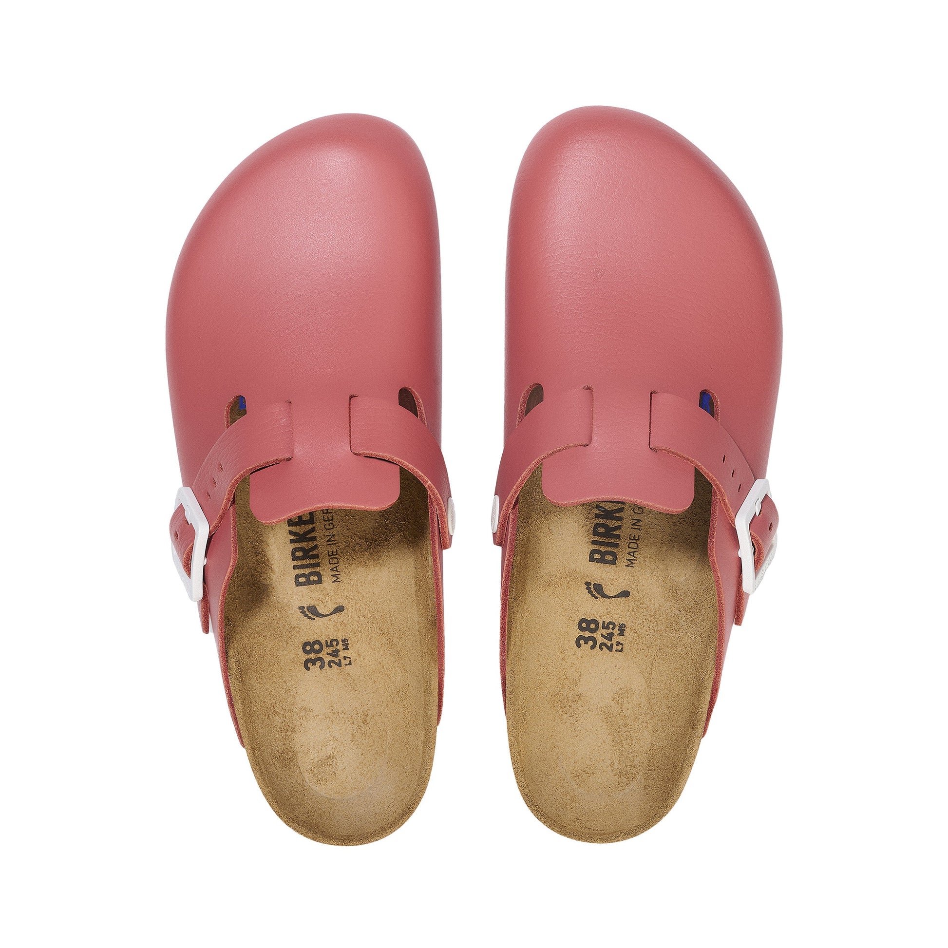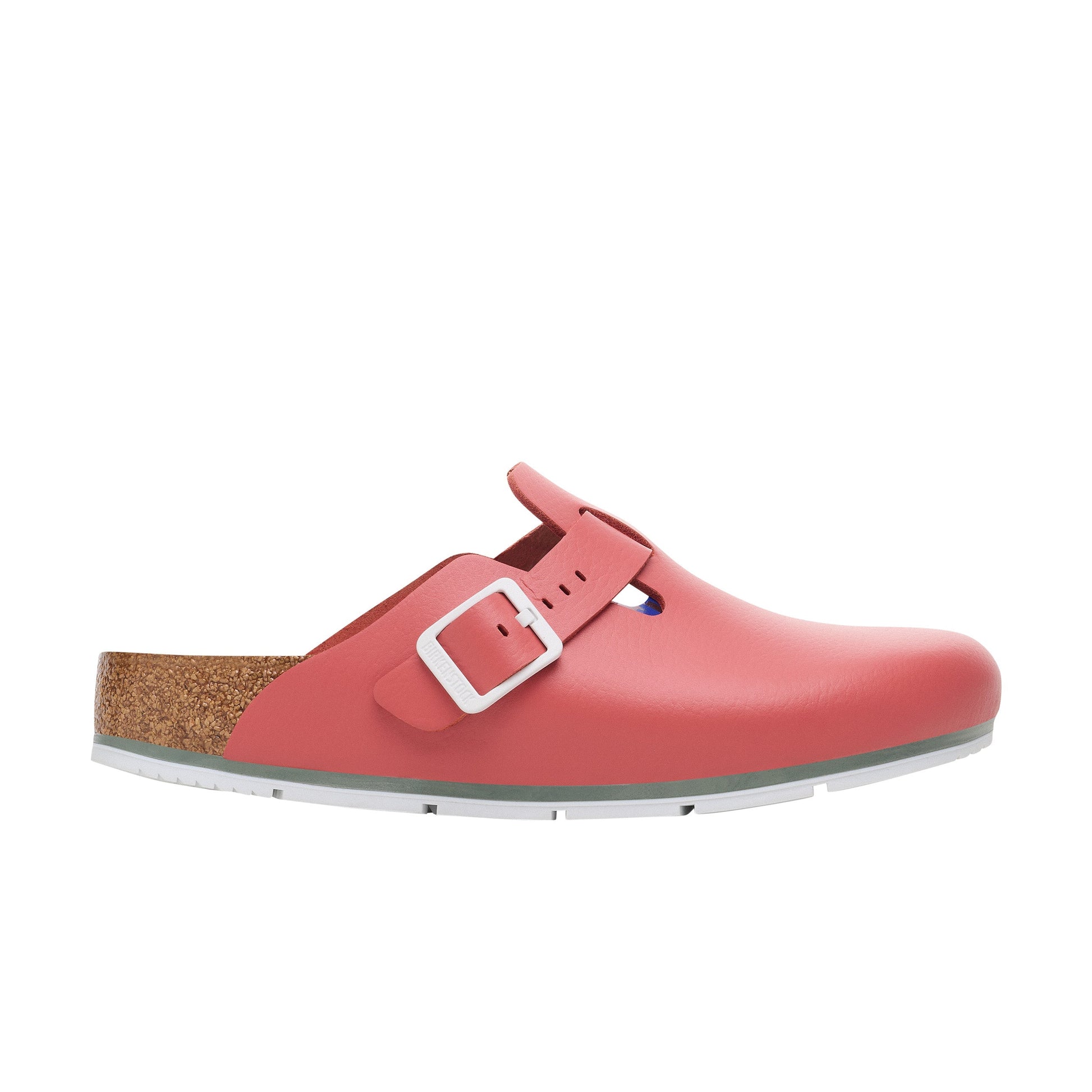 Our best-selling clog, retooled to help you get the job done. The Boston Pro brings on-your-feet functionality from top to bottom a fluid-resistant, PU-coated leather upper, durable, slip-resistant TPU outsole and pronounced tread recreates the style with safety in mind. Featuring legendary Birkenstock design elements, like a contoured cork-latex footbed that supports you through long hours on your feet.