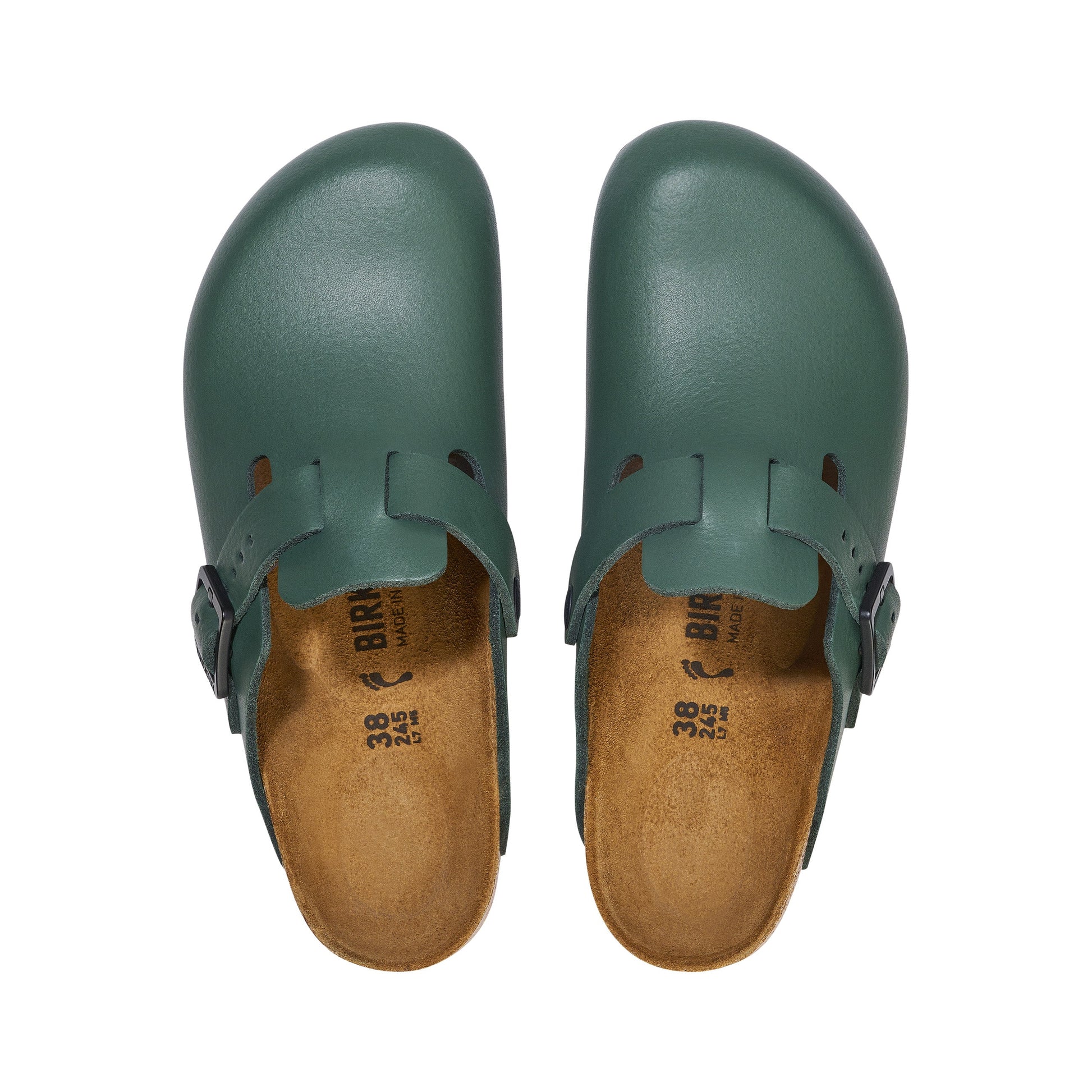 Our best-selling clog, retooled to help you get the job done. The Boston Pro brings on-your-feet functionality from top to bottom a fluid-resistant, PU-coated leather upper, durable, slip-resistant TPU outsole and pronounced tread recreates the style with safety in mind. Featuring legendary Birkenstock design elements, like a contoured cork-latex footbed that supports you through long hours on your feet.