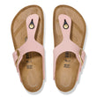 Lancée pour la première fois en 1983, la tong emblématique de Birkenstock, la Gizeh, fête ses 40 ans ! Parfaitement conçu et de style classique. La plupart des femmes aiment cette sandale car elle offre un soutien classique de la voûte plantaire Birkenstock avec une touche de simplicité élégante. La butée est fabriquée en résine flexible, conçue anatomiquement pour s'adapter confortablement entre les orteils et la sangle est dotée d'une boucle pour un ajustement sûr sur votre cou-de-pied. Le choix parfait pour les voyages ou toutes les aventures estivales.