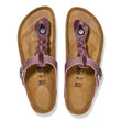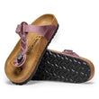 Lancée pour la première fois en 1983, la tong emblématique de Birkenstock, la Gizeh, fête ses 40 ans ! Parfaitement conçu et de style classique. La plupart des femmes adorent cette sandale car elle offre un soutien classique de la voûte plantaire Birkenstock avec une touche de simplicité élégante. La butée est fabriquée en résine flexible, conçue anatomiquement pour s'adapter confortablement entre les orteils et la sangle est dotée d'une boucle pour un ajustement sûr sur votre cou-de-pied. Le choix parfait pour les voyages ou toutes les aventures estivales.