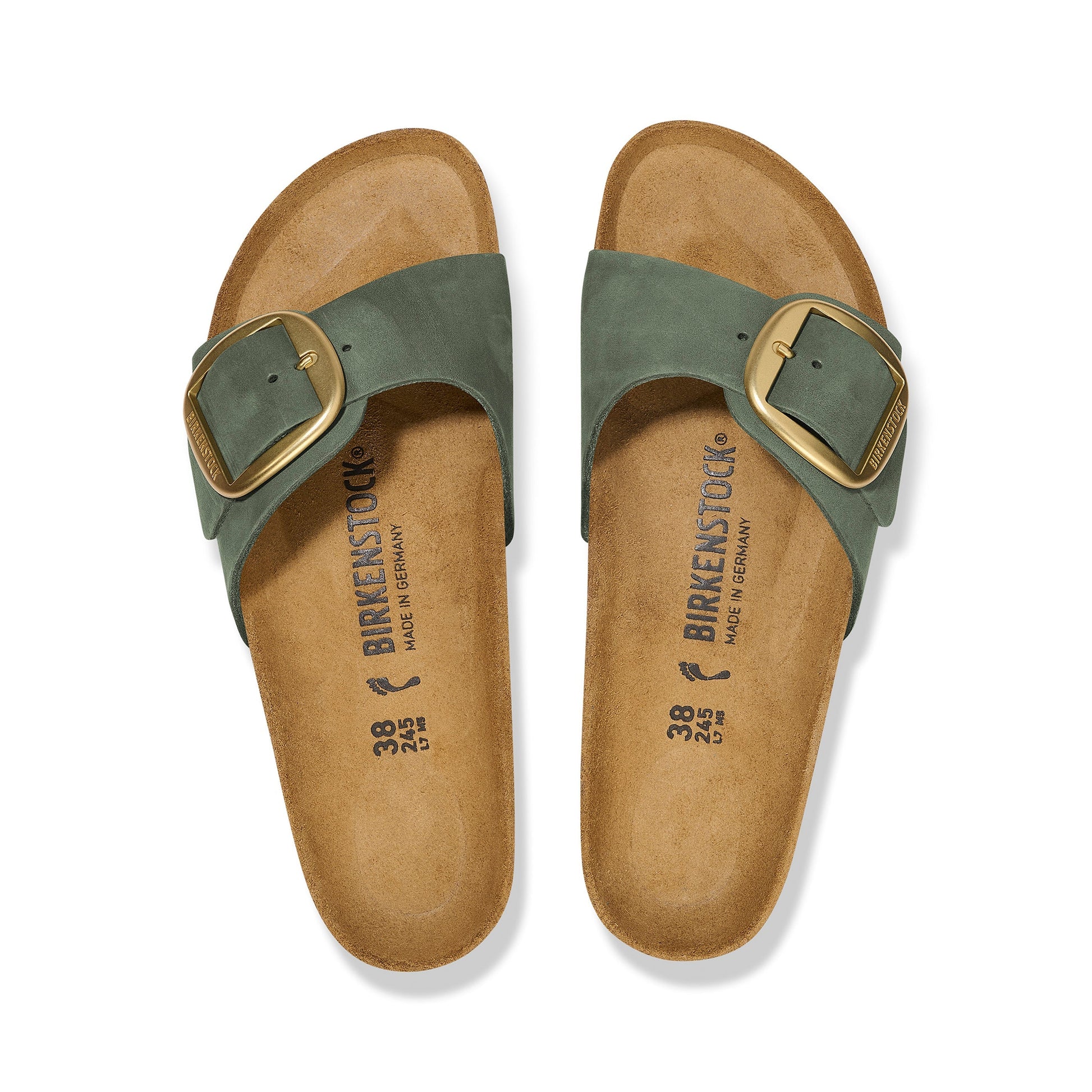 An icon since 1963, the Madrid redefined sandals with its contoured footbed and a single, sophisticated strap. In this version, a stand-out oversize buckle coupled with a thick, nubuck leather strap makes a bold statement.