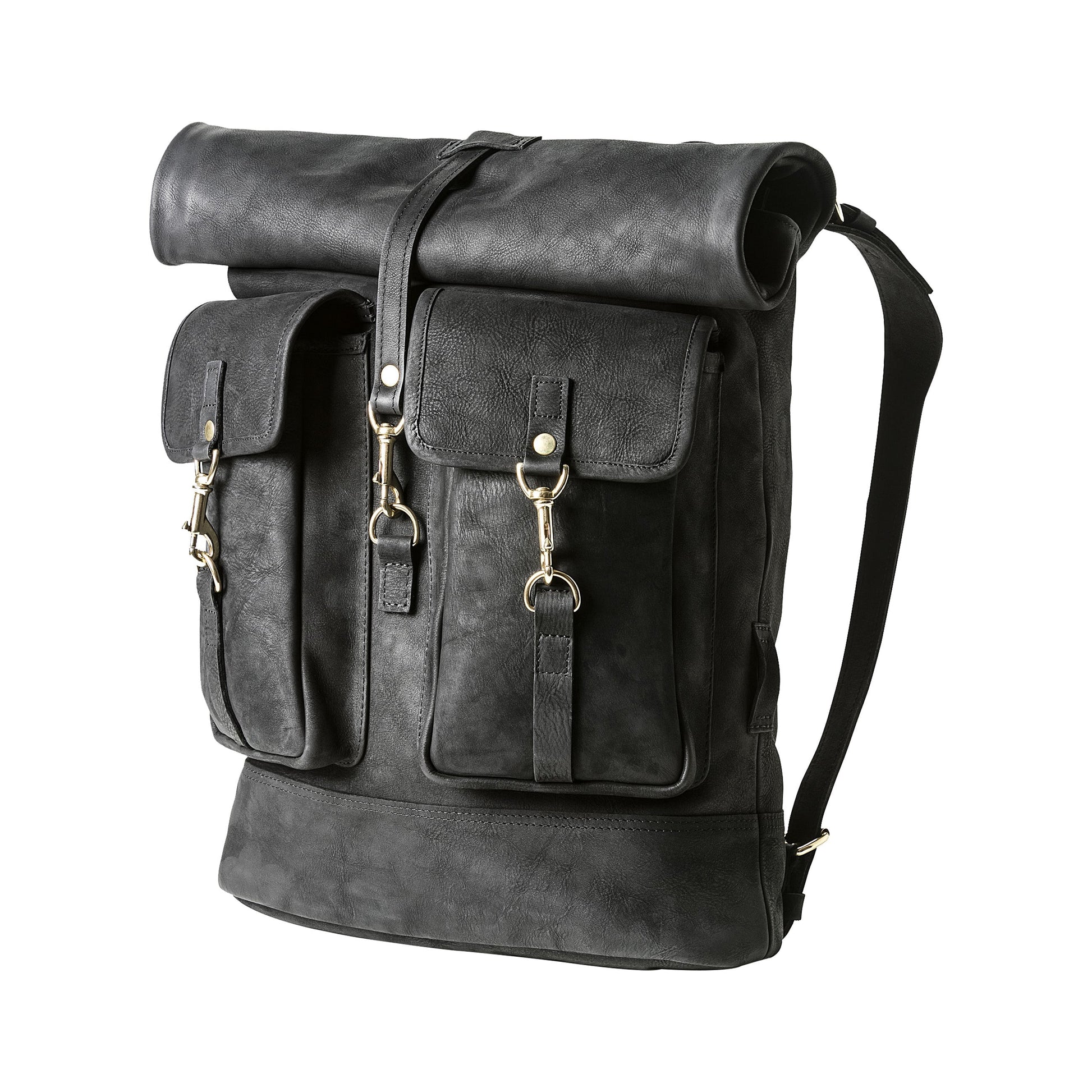 The spacious, mountaineering-inspired Zurich backpack boasts a traditional rustic appearance that is accentuated by a material mix of canvas and vegetable-tanned leather. The leather darkens gradually with use and gains an authentic patina. The two outside pockets can be securely closed using high-quality brass fasteners. The upper part of the backpack can be rolled down or up, depending on how much space is required. Additional comfort comes courtesy of the length-adjustable, reinforced carry straps and the shape-retentive leather base.